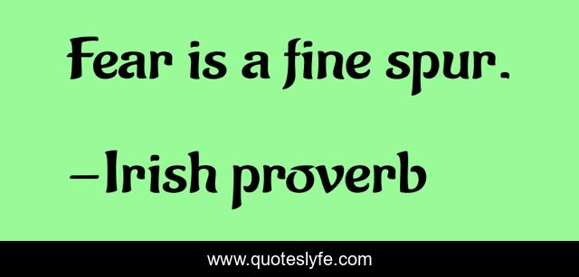 This page presents the quote "Fear is a fine spur.". Author of this quote is Irish proverb. This quote is about ways, fear, overcome,.