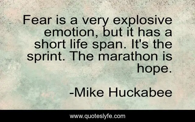 Fear is a very explosive emotion, but it has a short life span. It's the sprint. The marathon is hope.