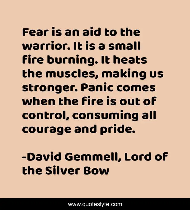 "David Gemmell, Lord of the Silver Bow Quotes." Quoteslyfe.com, 2025. Mon. 08 Dec. 2025. <https://www.quoteslyfe.com/quote/Fear-is-an-aid-to-the-warrior-14149>.