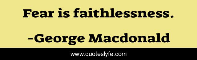 This page presents the quote "Fear is faithlessness.". Author of this quote is George Macdonald. This quote is about success, happiness,.