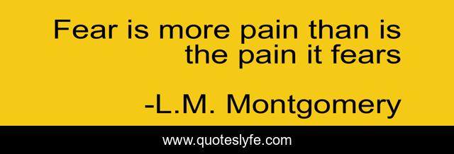 This page presents the quote "Fear is more pain than is the pain it fears". Author of this quote is L.M. Montgomery. This quote is about fear, pain,.