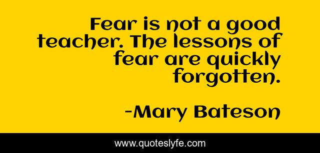 "Mary Bateson Quotes." Quoteslyfe.com, 2025. Mon. 08 Dec. 2025. <https://www.quoteslyfe.com/quote/Fear-is-not-a-good-teacher-The-272432>.