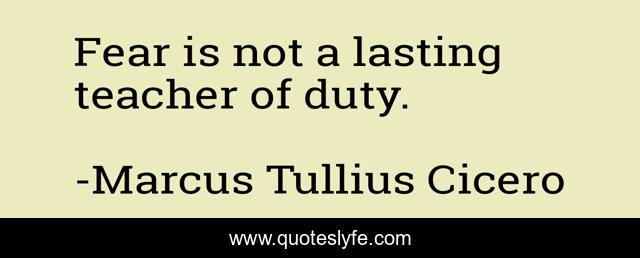 This page presents the quote "Fear is not a lasting teacher of duty.". Author of this quote is Marcus Tullius Cicero. This quote is about duty, fear, lasting,.