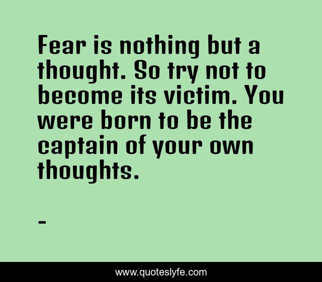 Fear is nothing but a thought. So try not to become its victim. You were born to be the captain of your own thoughts.