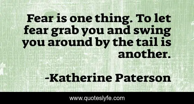 This page presents the quote "Fear is one thing. To let fear grab you and swing you around by the tail is another.". Author of this quote is Katherine Paterson. This quote is about future, anxiety,.