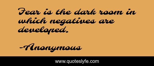 This page presents the quote "Fear is the dark room in which negatives are developed.". Author of this quote is Anonymous. .
