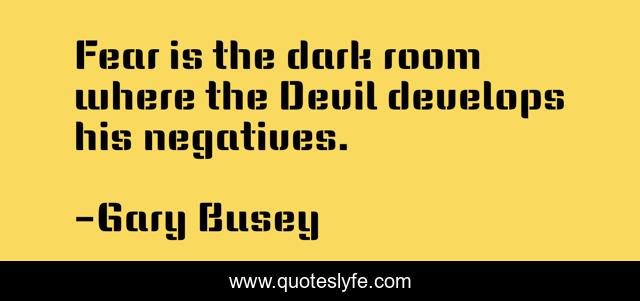 This page presents the quote "Fear is the dark room where the Devil develops his negatives.". Author of this quote is Gary Busey. This quote is about dark, devil,.