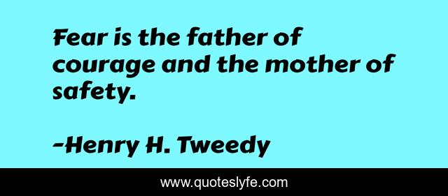 This page presents the quote "Fear is the father of courage and the mother of safety.". Author of this quote is Henry H. Tweedy. This quote is about ways, fear, overcome,.