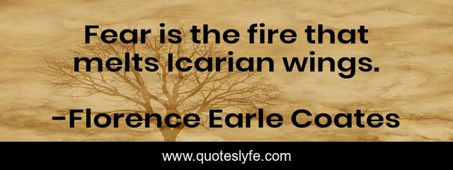 This page presents the quote "Fear is the fire that melts Icarian wings.". Author of this quote is Florence Earle Coates. .