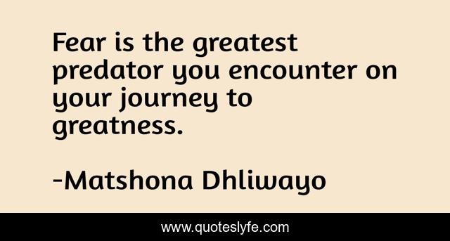 "Matshona Dhliwayo Quotes." Quoteslyfe.com, 2025. Fri. 05 Dec. 2025. <https://www.quoteslyfe.com/quote/Fear-is-the-greatest-predator-you-encounter-189958>.