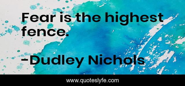 This page presents the quote "Fear is the highest fence.". Author of this quote is Dudley Nichols. This quote is about ways, fear, overcome,.
