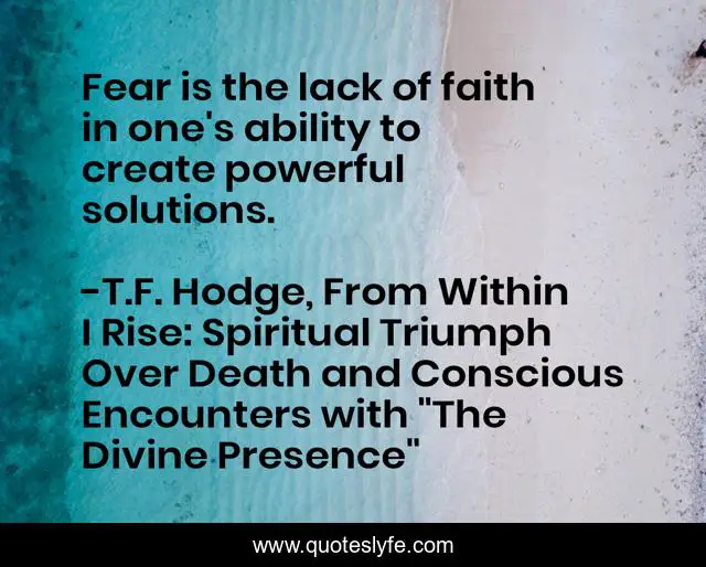 "T.F. Hodge, From Within I Rise: Spiritual Triumph Over Death and Conscious Encounters with "The Divine Presence" Quotes." Quoteslyfe.com, 2025. Tue. 09 Dec. 2025. <https://www.quoteslyfe.com/quote/Fear-is-the-lack-of-faith-in-22236>.