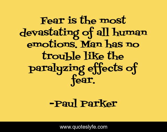 This page presents the quote "Fear is the most devastating of all human emotions. Man has no trouble like the paralyzing effects of fear.". Author of this quote is Paul Parker. .