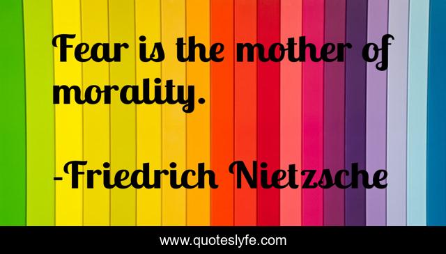 This page presents the quote "Fear is the mother of morality.". Author of this quote is Friedrich Nietzsche. This quote is about mother, morality,.