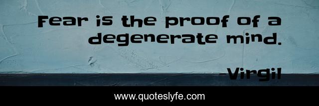 This page presents the quote "Fear is the proof of a degenerate mind.". Author of this quote is Virgil. .