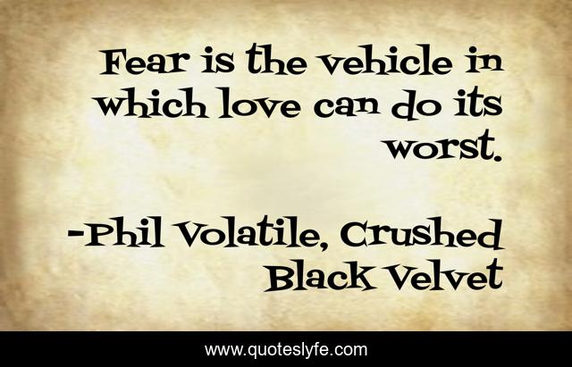 "Phil Volatile, Crushed Black Velvet Quotes." Quoteslyfe.com, 2025. Sat. 06 Dec. 2025. <https://www.quoteslyfe.com/quote/Fear-is-the-vehicle-in-which-love-45587>.