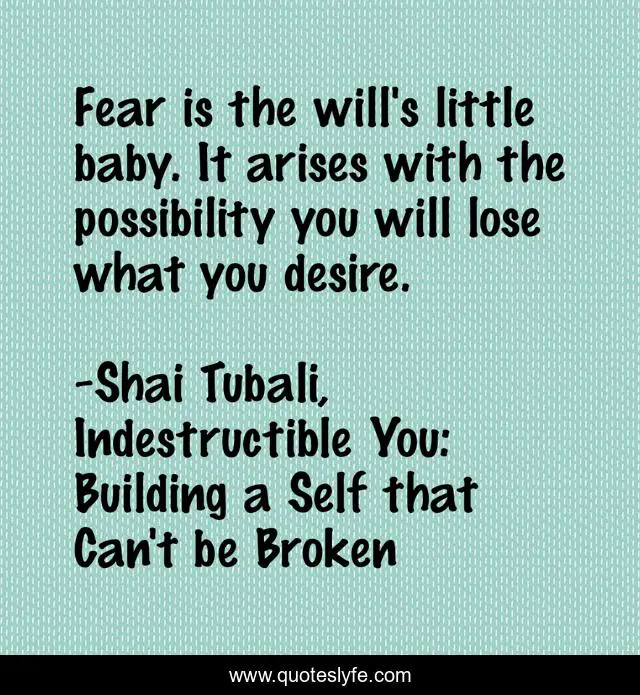 "Shai Tubali, Indestructible You: Building a Self that Can't be Broken Quotes." Quoteslyfe.com, 2025. Sat. 06 Dec. 2025. <https://www.quoteslyfe.com/quote/Fear-is-the-will-s-little-baby-45549>.