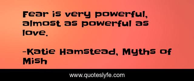 This page presents the quote "Fear is very powerful, almost as powerful as love.". Author of this quote is Katie Hamstead, Myths of Mish. This quote is about fear, love, affection,.
