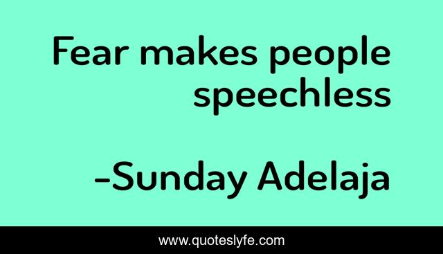 This page presents the quote "Fear makes people speechless". Author of this quote is Sunday Adelaja. This quote is about fear, people, speechless,.