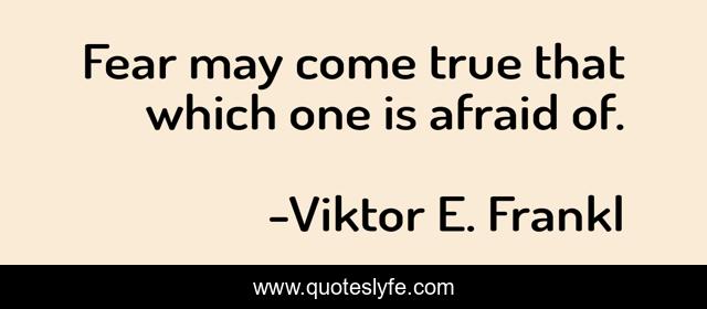 This page presents the quote "Fear may come true that which one is afraid of.". Author of this quote is Viktor E. Frankl. This quote is about may, afraid, true,.