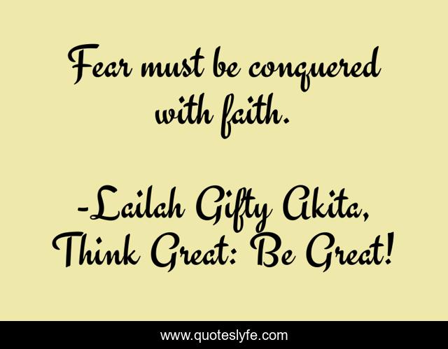 "Lailah Gifty Akita, Think Great: Be Great! Quotes." Quoteslyfe.com, 2025. Fri. 05 Dec. 2025. <https://www.quoteslyfe.com/quote/Fear-must-be-conquered-with-faith-78382>.