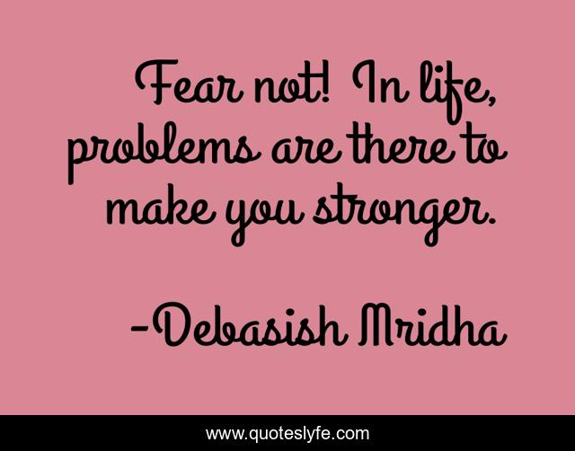 This page presents the quote "Fear not! In life, problems are there to make you stronger.". Author of this quote is Debasish Mridha. This quote is about problems-make-you-stronger, philosophy, debasish-mridha, quotes, debasish-mridha-md, inspirational, enthusiasm, life-problems, problems-in-life,.