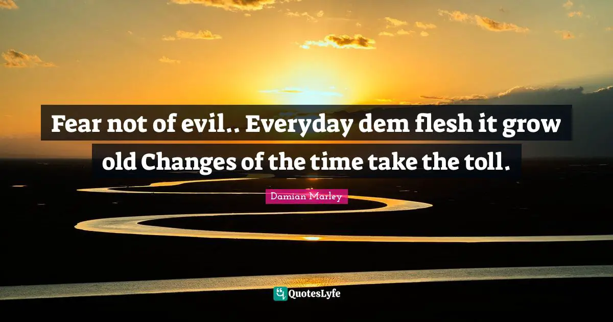 This page presents the quote "Fear not of evil.. Everyday dem flesh it grow old Changes of the time take the toll.". Author of this quote is Damian Marley. This quote is about time, fear not, flesh, everyday, evil,.