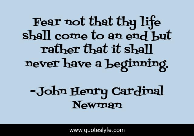 This page presents the quote "Fear not that thy life shall come to an end but rather that it shall never have a beginning.". Author of this quote is John Henry Cardinal Newman. This quote is about future, anxiety,.