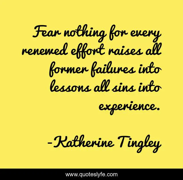 This page presents the quote "Fear nothing for every renewed effort raises all former failures into lessons all sins into experience.". Author of this quote is Katherine Tingley. This quote is about ways, fear, overcome,.
