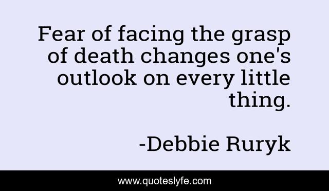 This page presents the quote "Fear of facing the grasp of death changes one's outlook on every little thing.". Author of this quote is Debbie Ruryk. This quote is about courage, life-and-living, bravery,.