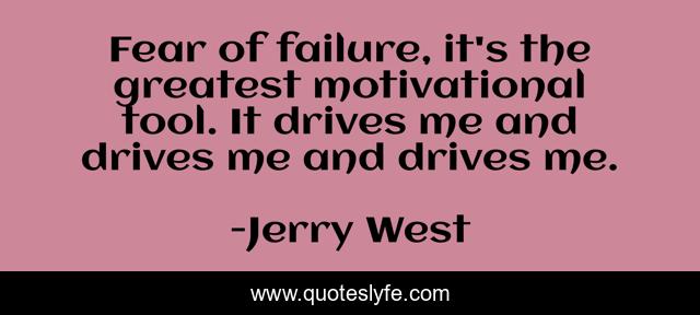 This page presents the quote "Fear of failure, it's the greatest motivational tool. It drives me and drives me and drives me.". Author of this quote is Jerry West. This quote is about me, confidence, positive, motivational, optimistic, fear,.