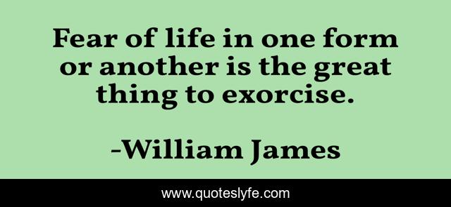 This page presents the quote "Fear of life in one form or another is the great thing to exorcise.". Author of this quote is William James. This quote is about future, anxiety,.