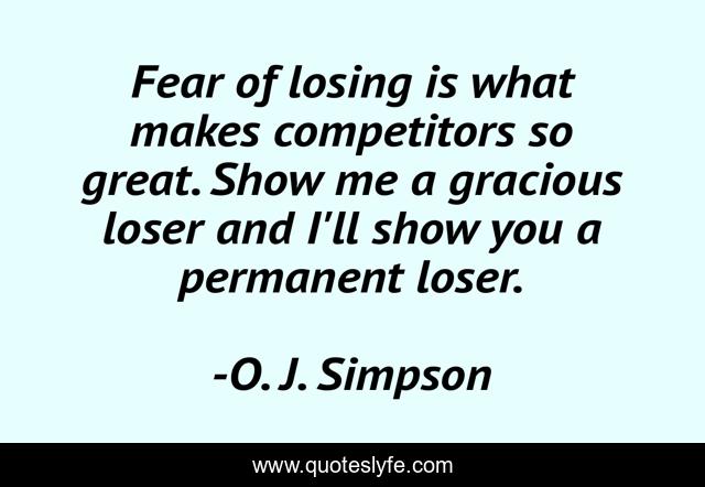 This page presents the quote "Fear of losing is what makes competitors so great. Show me a gracious loser and I'll show you a permanent loser.". Author of this quote is O. J. Simpson. .