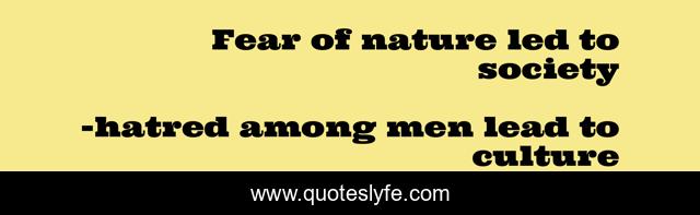 This page presents the quote "Fear of nature led to society". Author of this quote is hatred among men lead to culture. .
