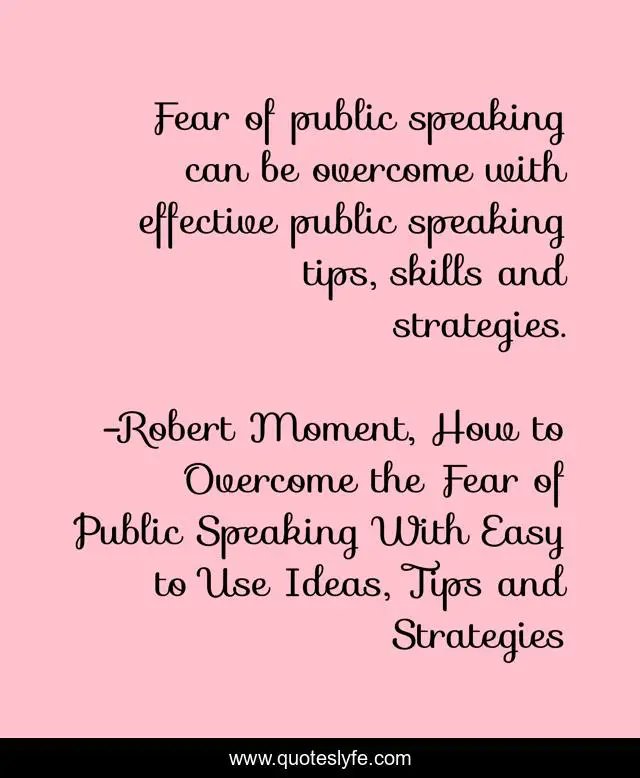"Robert Moment, How to Overcome the Fear of Public Speaking With Easy to Use Ideas, Tips and Strategies Quotes." Quoteslyfe.com, 2025. Sat. 06 Dec. 2025. <https://www.quoteslyfe.com/quote/Fear-of-public-speaking-can-be-overcome-235469>.