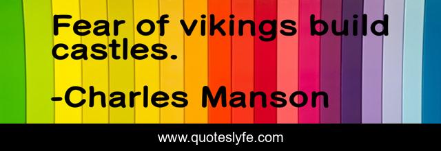 This page presents the quote "Fear of vikings build castles.". Author of this quote is Charles Manson. This quote is about fear, paranoia,.