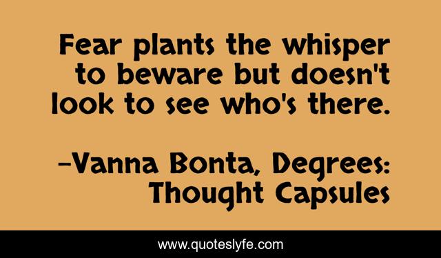 "Vanna Bonta, Degrees: Thought Capsules Quotes." Quoteslyfe.com, 2025. Mon. 08 Dec. 2025. <https://www.quoteslyfe.com/quote/Fear-plants-the-whisper-to-beware-but-45109>.