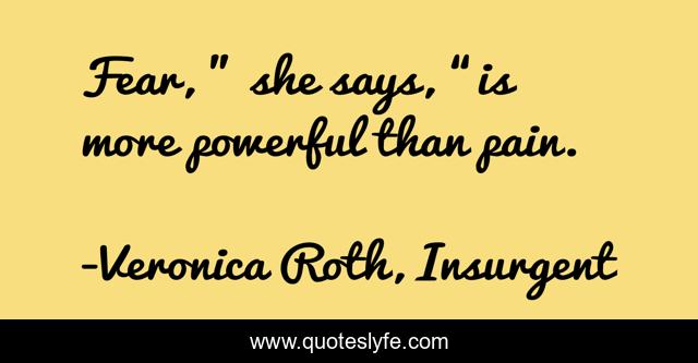 This page presents the quote "Fear, ” she says, “is more powerful than pain.". Author of this quote is Veronica Roth, Insurgent. This quote is about fear, pain,.