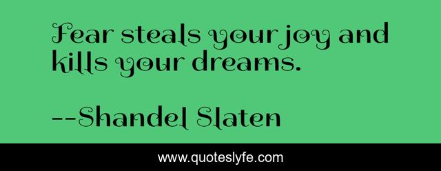 This page presents the quote "Fear steals your joy and kills your dreams.". Author of this quote is -Shandel Slaten. This quote is about fearless, fear, dreams, joy,.
