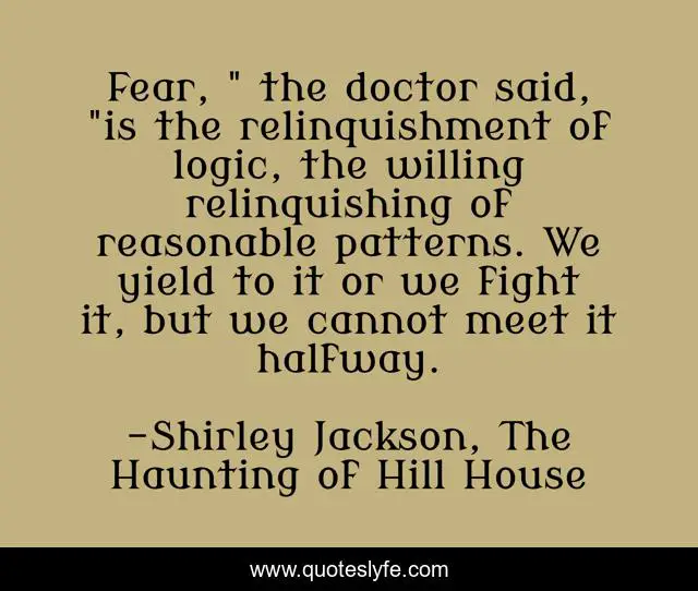 "Shirley Jackson, The Haunting of Hill House Quotes." Quoteslyfe.com, 2025. Tue. 09 Dec. 2025. <https://www.quoteslyfe.com/quote/Fear-the-doctor-said-is-the-relinquishment-45018>.