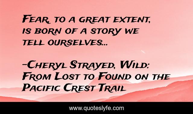 This page presents the quote "Fear, to a great extent, is born of a story we tell ourselves...". Author of this quote is Cheryl Strayed, Wild: From Lost to Found on the Pacific Crest Trail. .