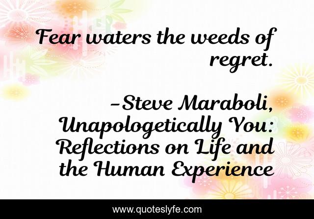"Steve Maraboli, Unapologetically You: Reflections on Life and the Human Experience Quotes." Quoteslyfe.com, 2025. Sat. 06 Dec. 2025. <https://www.quoteslyfe.com/quote/Fear-waters-the-weeds-of-regret-202478>.