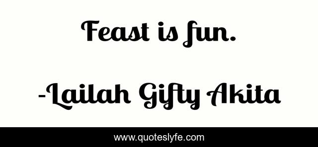 This page presents the quote "Feast is fun.". Author of this quote is Lailah Gifty Akita. This quote is about fun, pleasure, feast,.