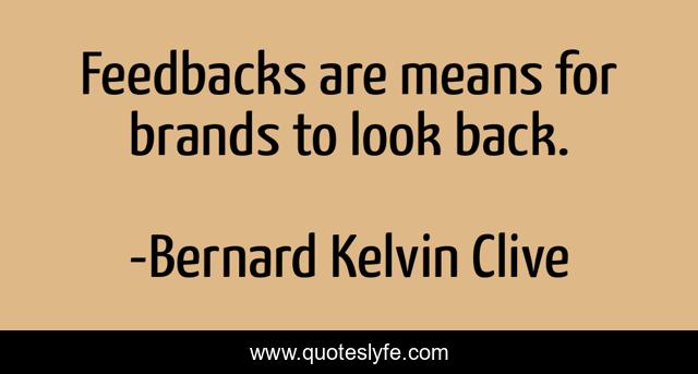 "Bernard Kelvin Clive Quotes." Quoteslyfe.com, 2025. Sun. 07 Dec. 2025. <https://www.quoteslyfe.com/quote/Feedbacks-are-means-for-brands-to-look-256181>.