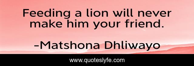 "Matshona Dhliwayo Quotes." Quoteslyfe.com, 2025. Mon. 08 Dec. 2025. <https://www.quoteslyfe.com/quote/Feeding-a-lion-will-never-make-him-227261>.