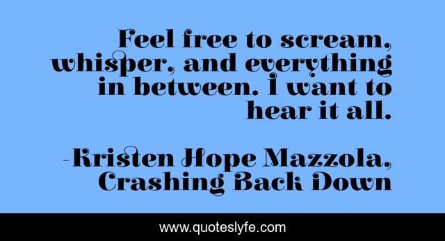 "Kristen Hope Mazzola, Crashing Back Down Quotes." Quoteslyfe.com, 2025. Fri. 05 Dec. 2025. <https://www.quoteslyfe.com/quote/Feel-free-to-scream-whisper-and-everything-232522>.