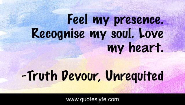 "Truth Devour, Unrequited Quotes." Quoteslyfe.com, 2025. Mon. 08 Dec. 2025. <https://www.quoteslyfe.com/quote/Feel-my-presence-Recognise-my-soul-Love-97859>.