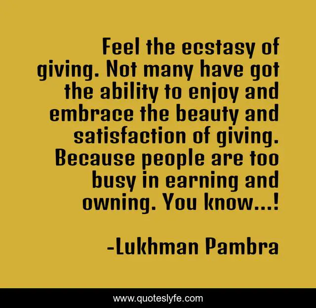 "Lukhman Pambra Quotes." Quoteslyfe.com, 2025. Fri. 05 Dec. 2025. <https://www.quoteslyfe.com/quote/Feel-the-ecstasy-of-giving-Not-many-201133>.