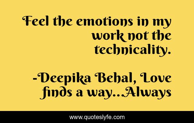 "Deepika Behal, Love finds a way...Always Quotes." Quoteslyfe.com, 2025. Sat. 06 Dec. 2025. <https://www.quoteslyfe.com/quote/Feel-the-emotions-in-my-work-not-224004>.
