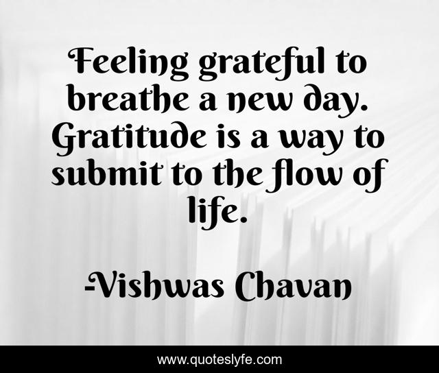 This page presents the quote "Feeling grateful to breathe a new day. Gratitude is a way to submit to the flow of life.". Author of this quote is Vishwas Chavan. This quote is about gratitude, flow-of-life, life, submission, vishwasutras, grateful,.